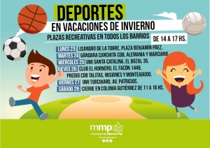 El Municipio, a través del área de Deportes, convoca a participar de las Plazas Recreativas de Vacaciones de Invierno en todos los barrios, siempre en el horario de 14 a 17 hs.