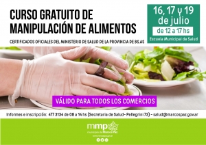 16, 17 y 19 de julio de 12 a 17 hs. en la Escuela Municipal de Salud