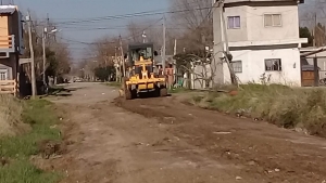 Equipos y maquinaria de mantenimiento Vial del municipio trabajan en tareas de nivelado de calles en el barrio La Loma.