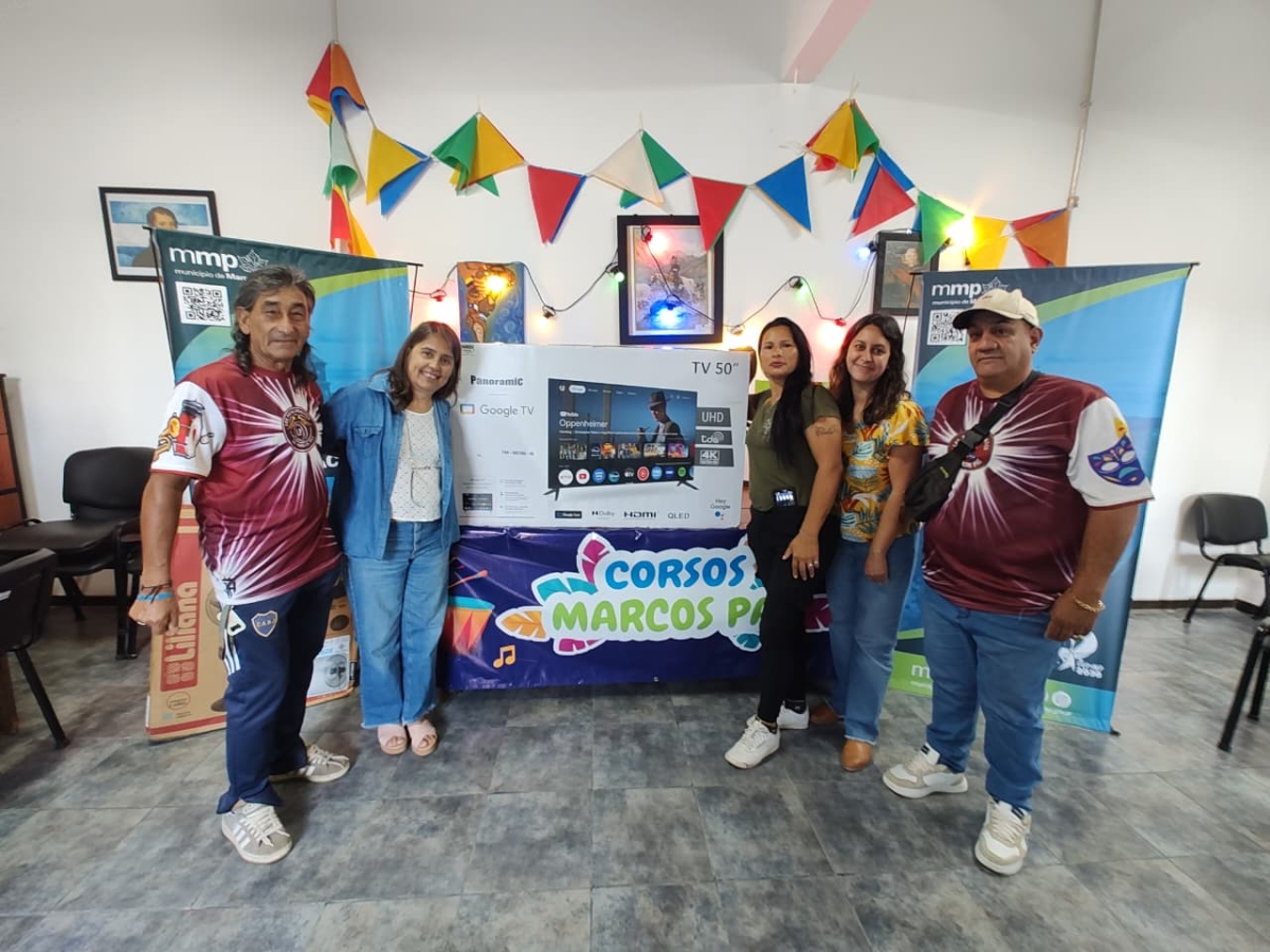 Se entregaron los premios que se sortearon durante los Corsos Marcos Paz 2026. La responsable de Desarrollo Estratégico y Delegaciones, Verónica Casco, explicó que “el Municipio donó los premios para que las murgas puedan vender las rifas y los vecinos de esta manera colaborar con las murgas”. Además detalló que “los premios entregados son un ventilador, un microondas y un televisor 50 pulgadas” y aseguró que “Los corsos barriales tienen que ver con nuestra identidad y queremos que no se pierda”, agregó. En tanto, Lucio Jazmín, integrante de una de las murgas participantes, agradeció el apoyo del Municipio y destacó “la importancia de los premios porque todos los vecinos colaboraron con la rifa y es una ayuda muy importante”.